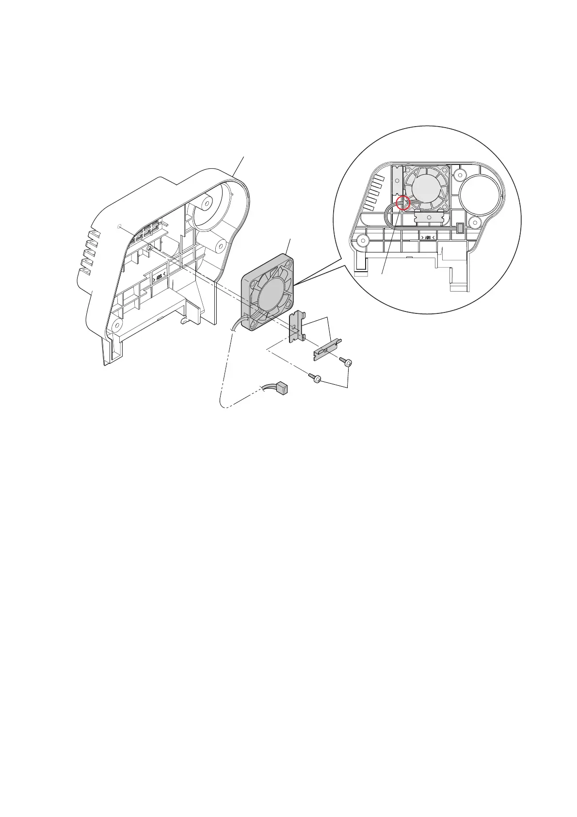 1. Remove the “SA2 Ribbon Unit Fan”. Refer to “3-6-3 “Unit Ribbon” Covers”.