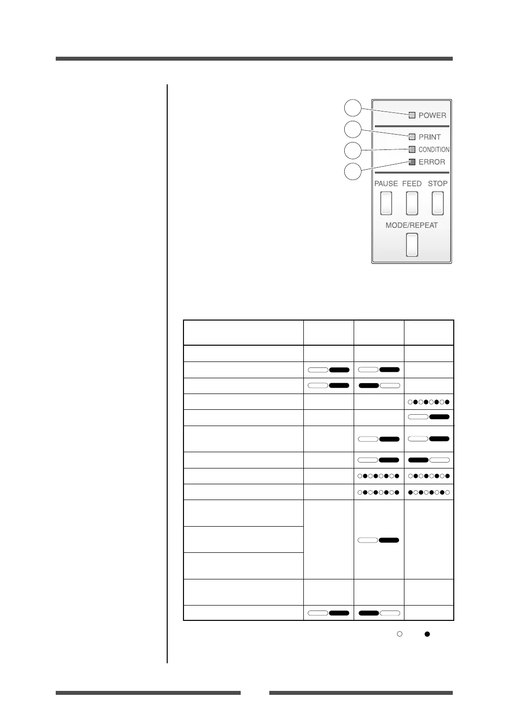 in the printer, an alarm sounds and each LED either lights up or flashes to