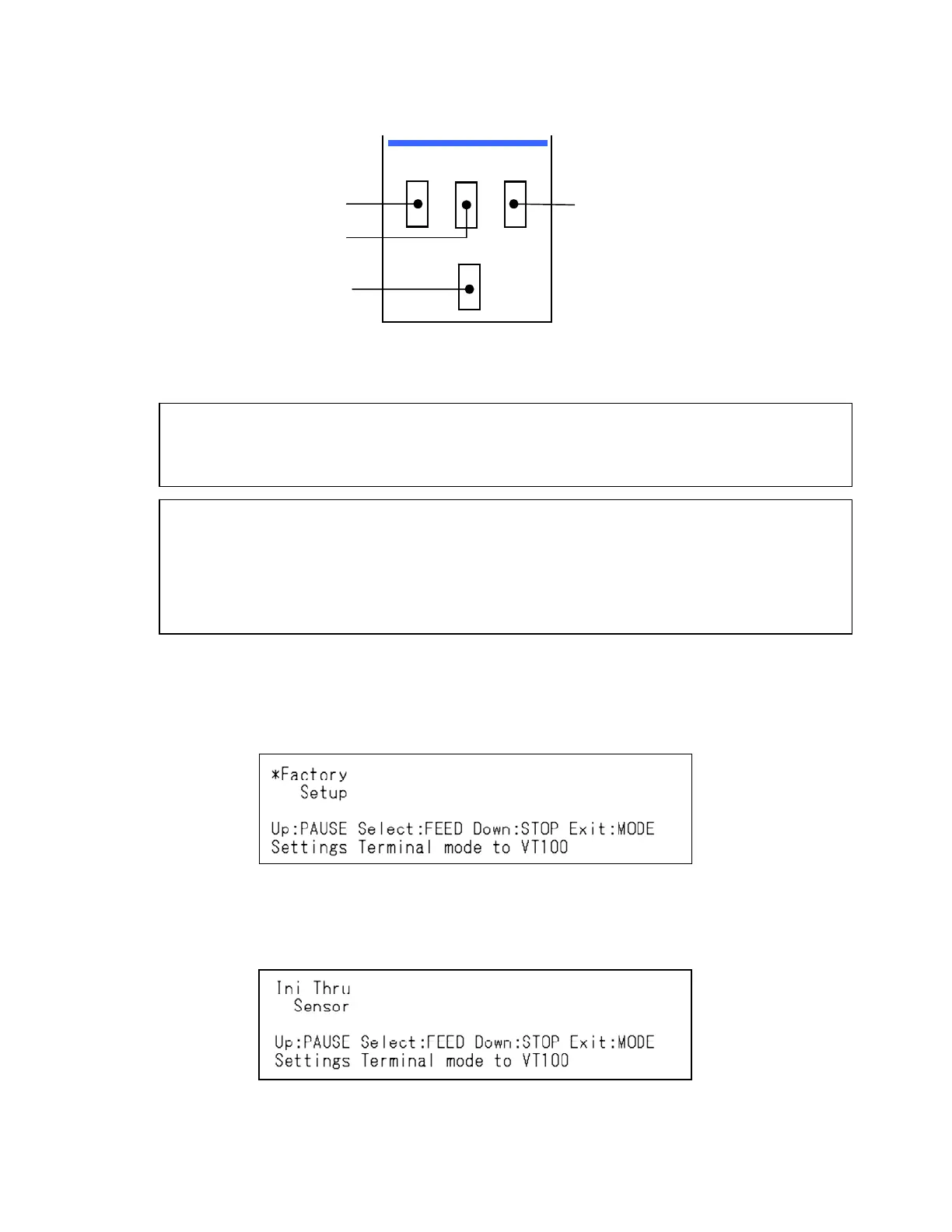 2. While pressing and holding the [MODE], [FEED] and [STOP] key, turn on the power. 2. While pressing and holding the [MODE], [FEED] and [STOP] key, turn on the power.