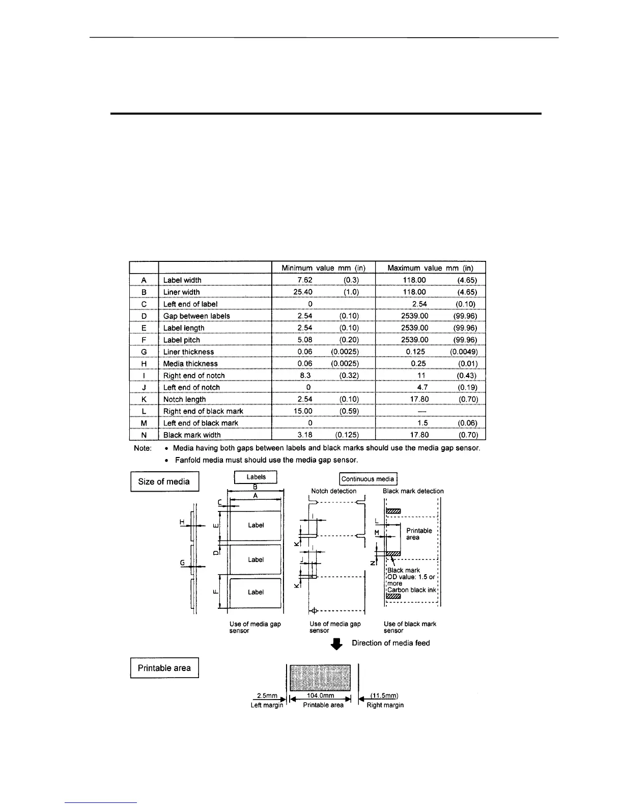 For gaps between labels, notches of tags (labels) and black marks, see the size of media below.