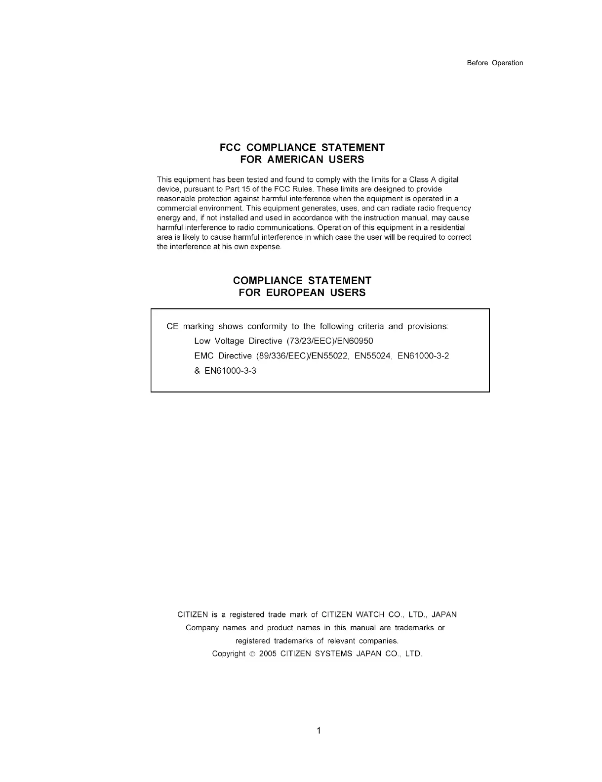 Citizen CLP-7401 - Before Operation
