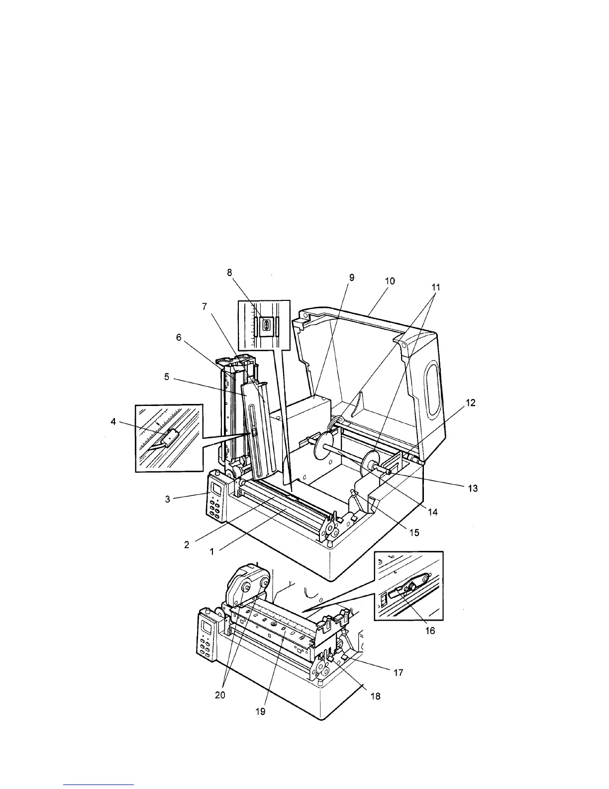 10 Top cover 20 Ribbon mandrel holder