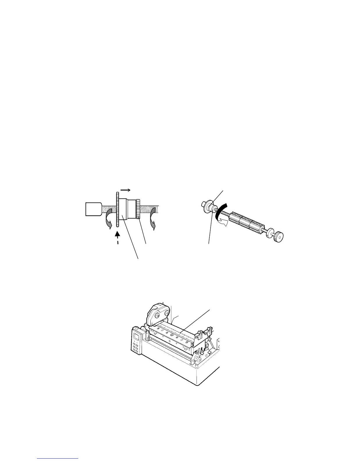 2) Referring to the scale on the tear bar, adjust the flange so that the ribbon is put in the center