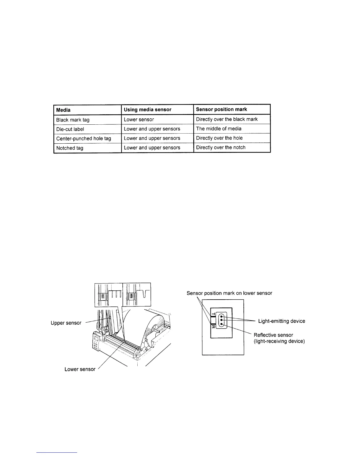 The printer is equipped with the upper and lower media sensors that are moved separately.