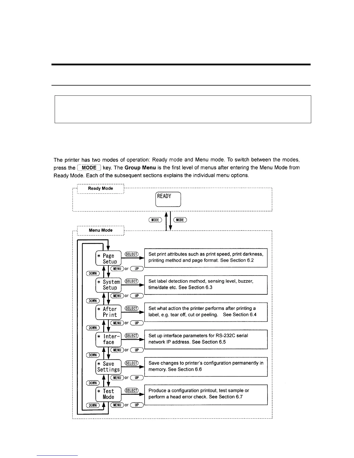 This chapter explains all the possible menu options for configuring the barcode printer. Refer to