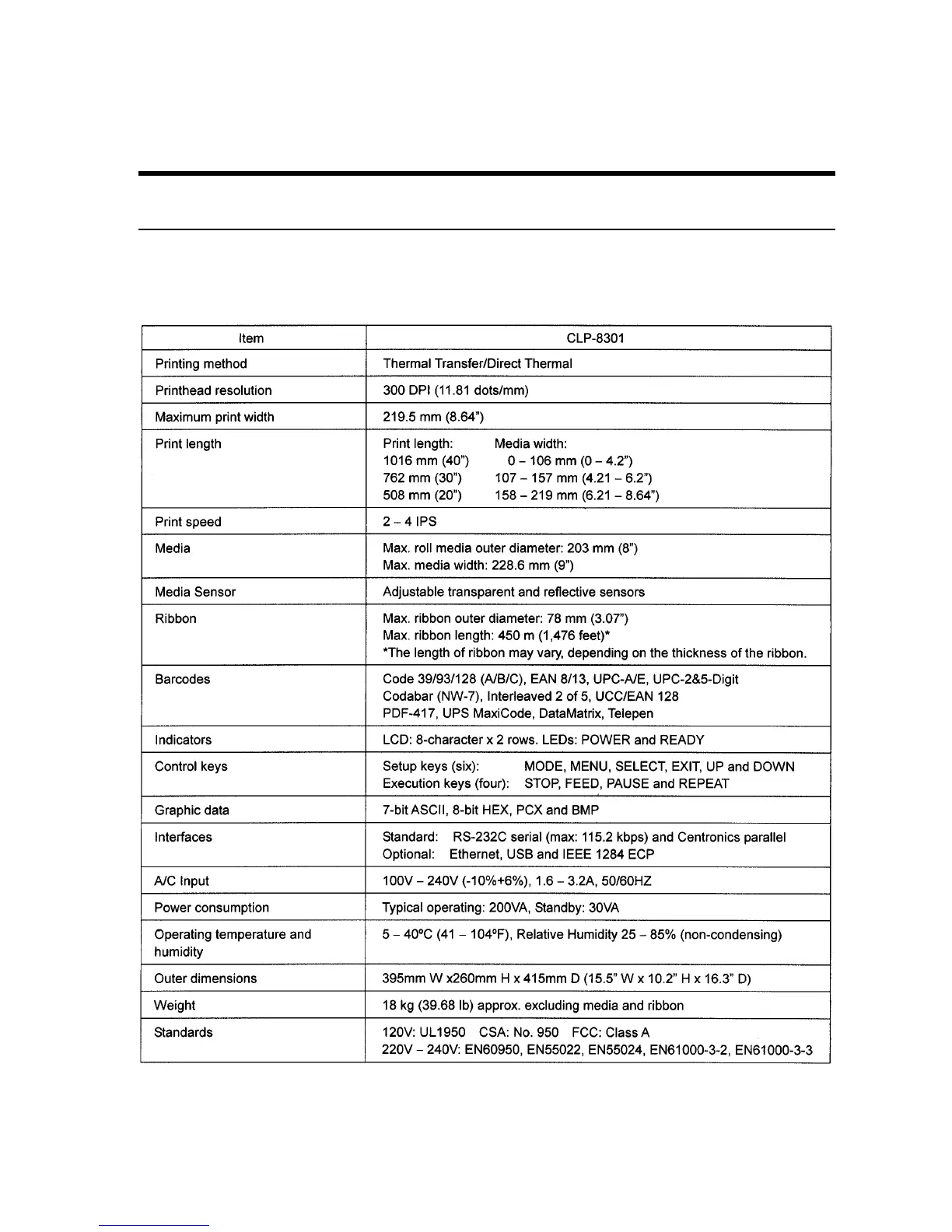 Citizen CLP-8301 - Chapter 9 Specifications; General Specifications