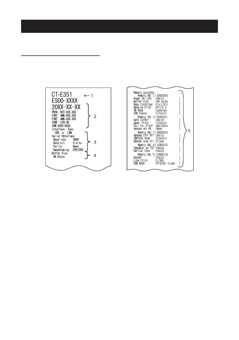 button to start self test. The printer will print its model name, version, memory switch
