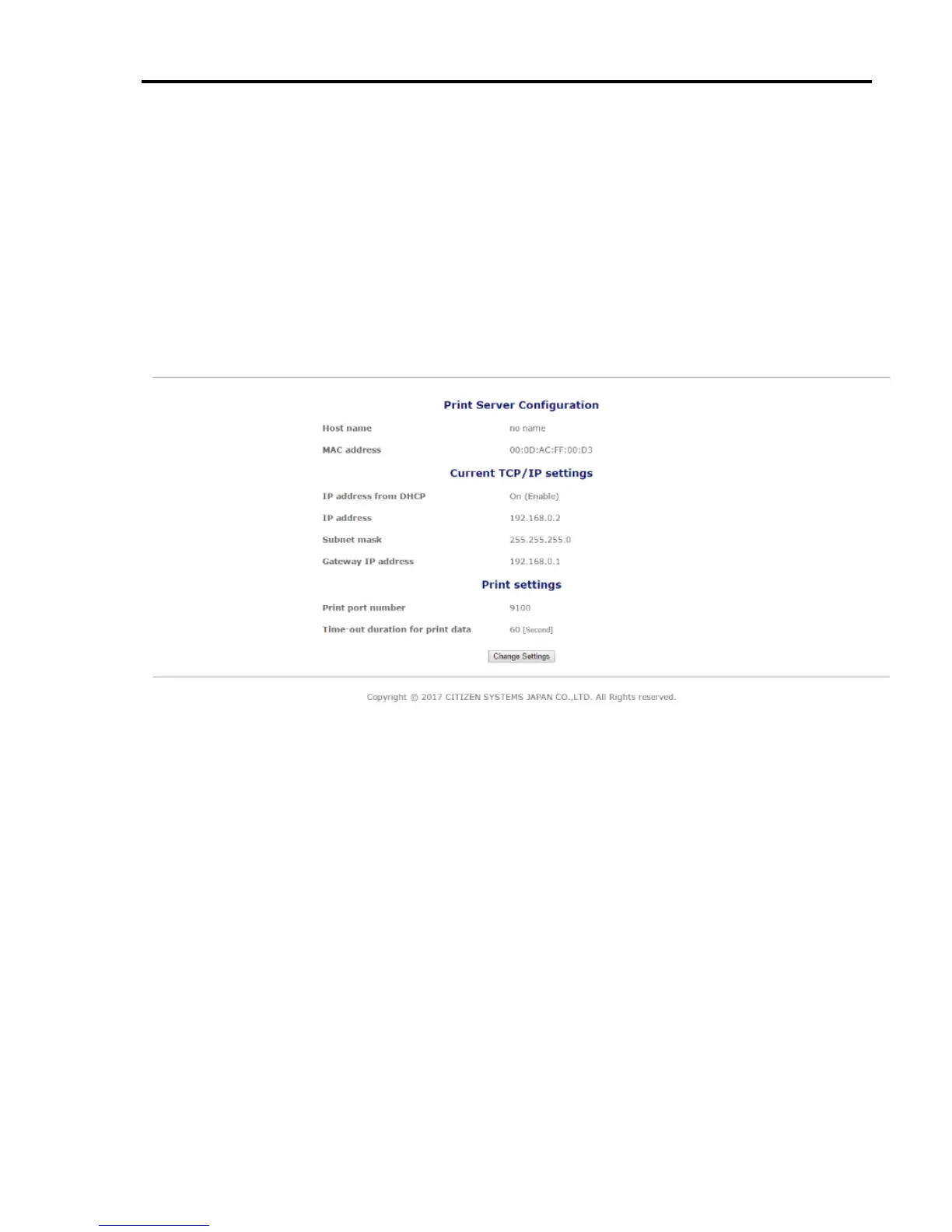 Using a Web browser, you can go to the Print Server Configuration screen to view or