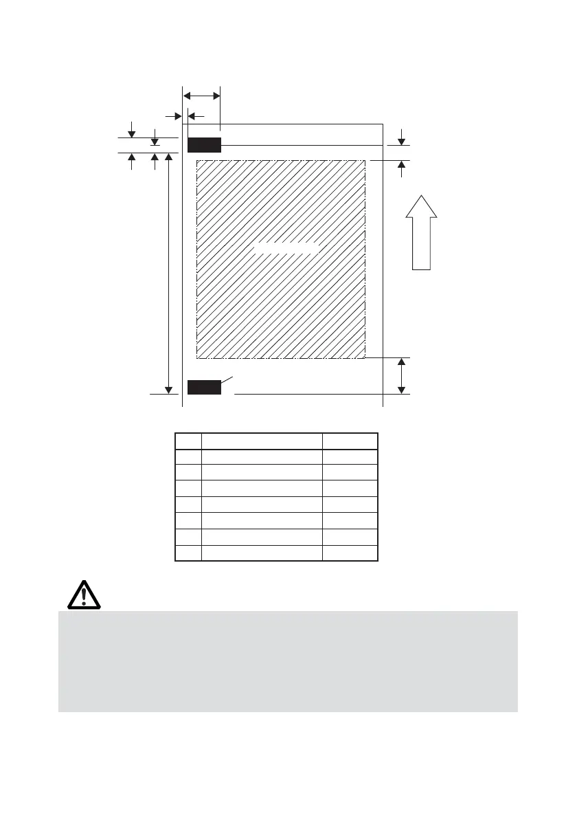 3) Refer to the above drawing for the printable area and have enough margings specified