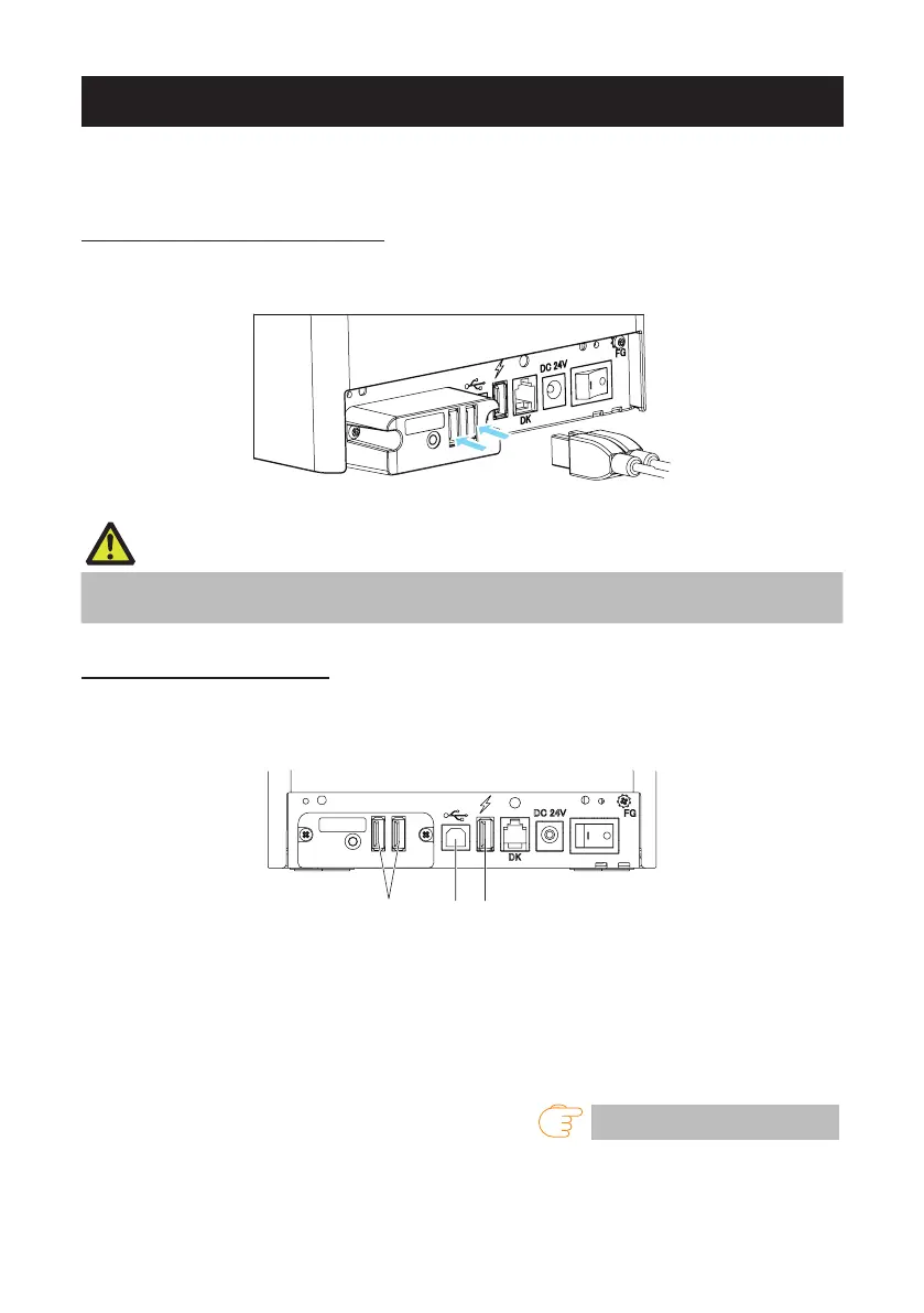 Connect the USB device to be connected to the correct place in reference to the fol-