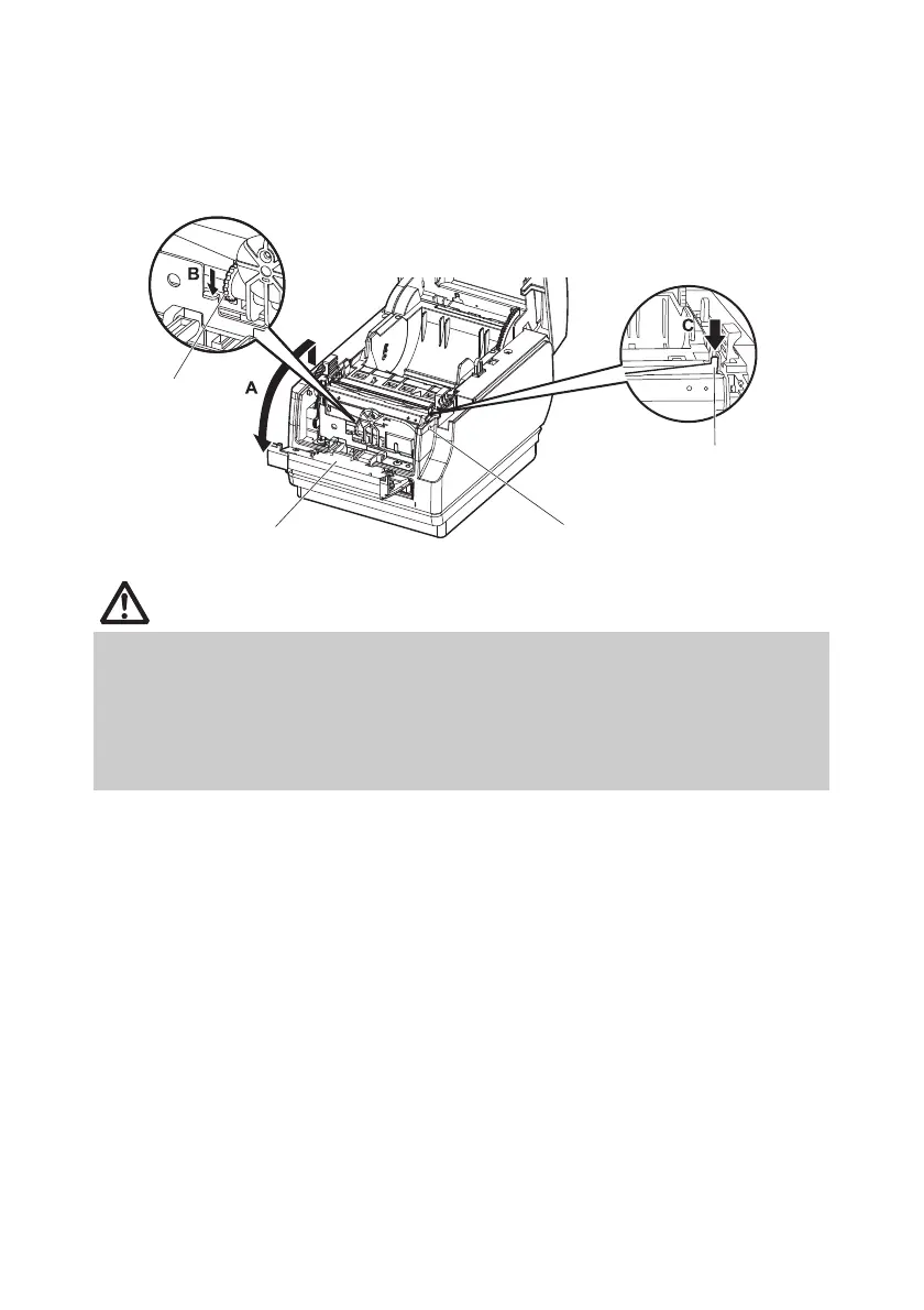 Be careful not to touch the opening for the auto cutter while the paper cover is open.