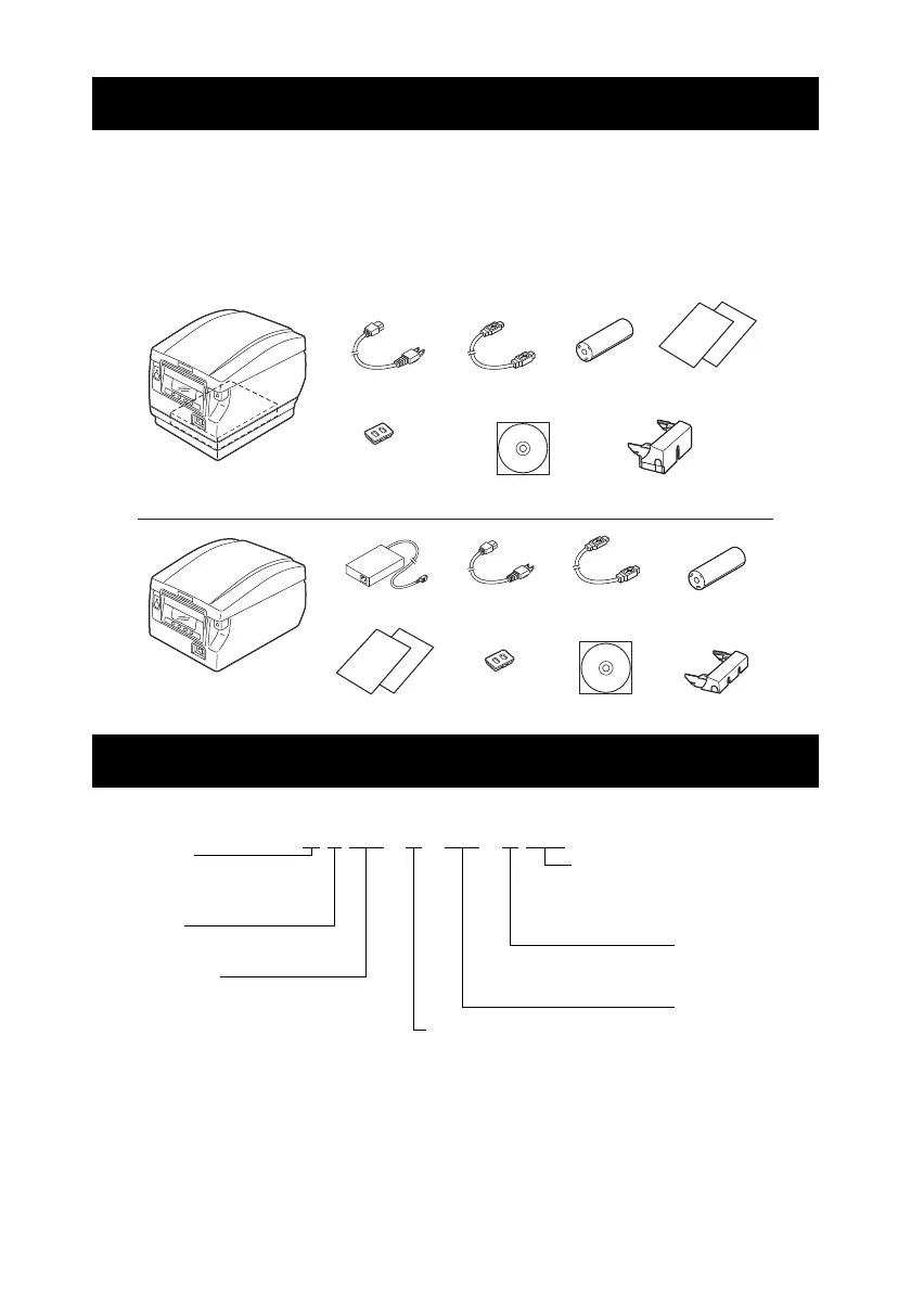 Model numbers indicate printer features according to the following system.