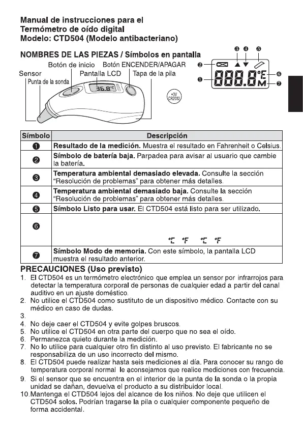 No sumerja la unidad CTD504 en agua ni en ningún otro líquido.