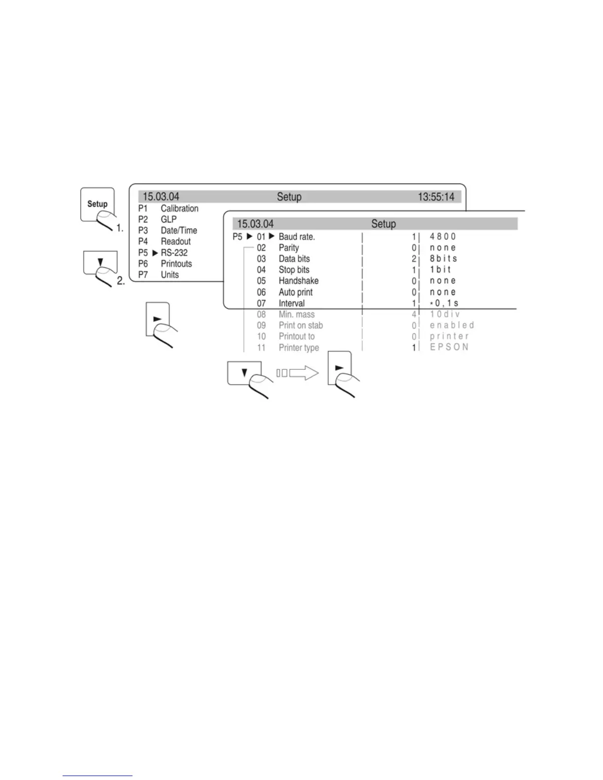 07 Interval Interval the balance sends the result from the display. It is