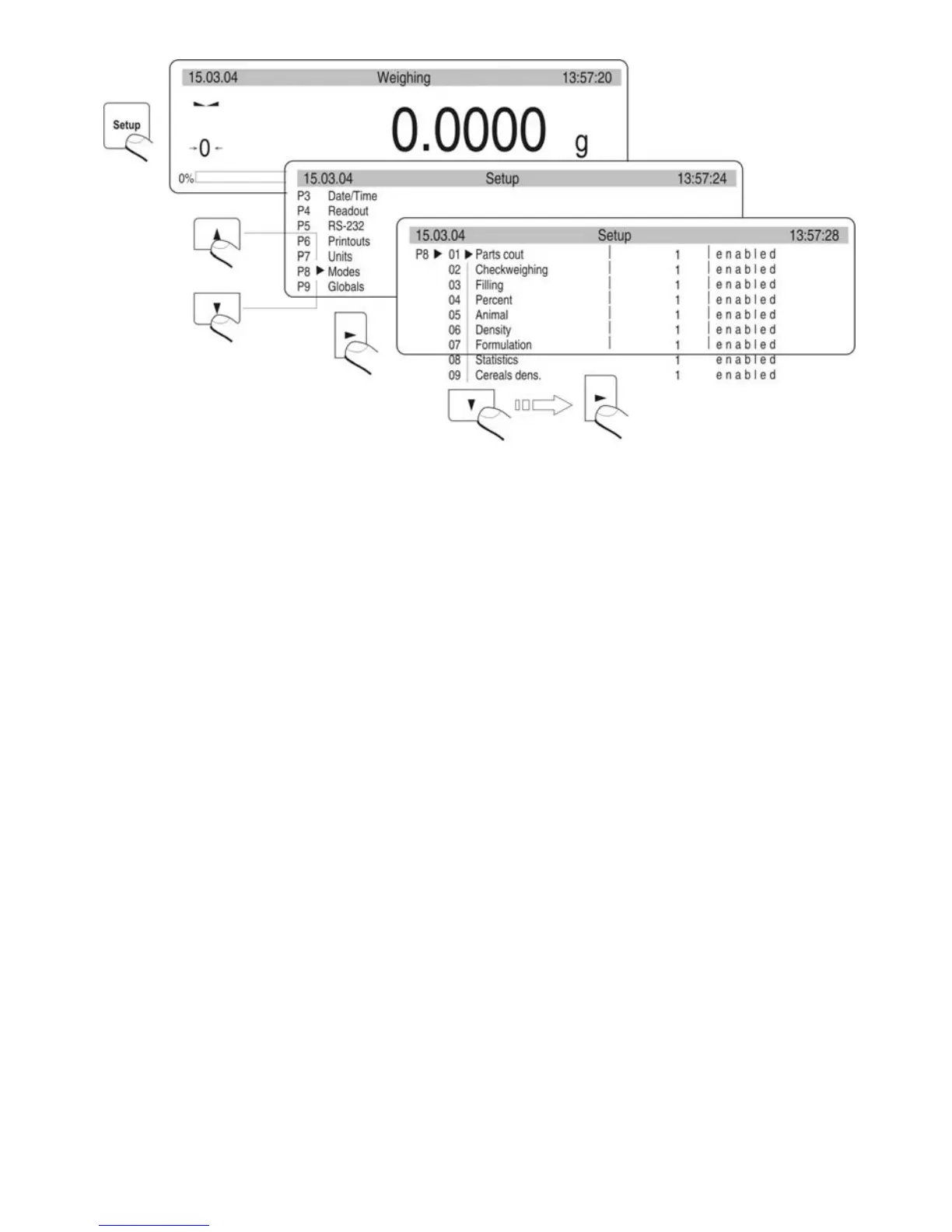 All work modes values of the parameters are 1: yes are accessible from the level of