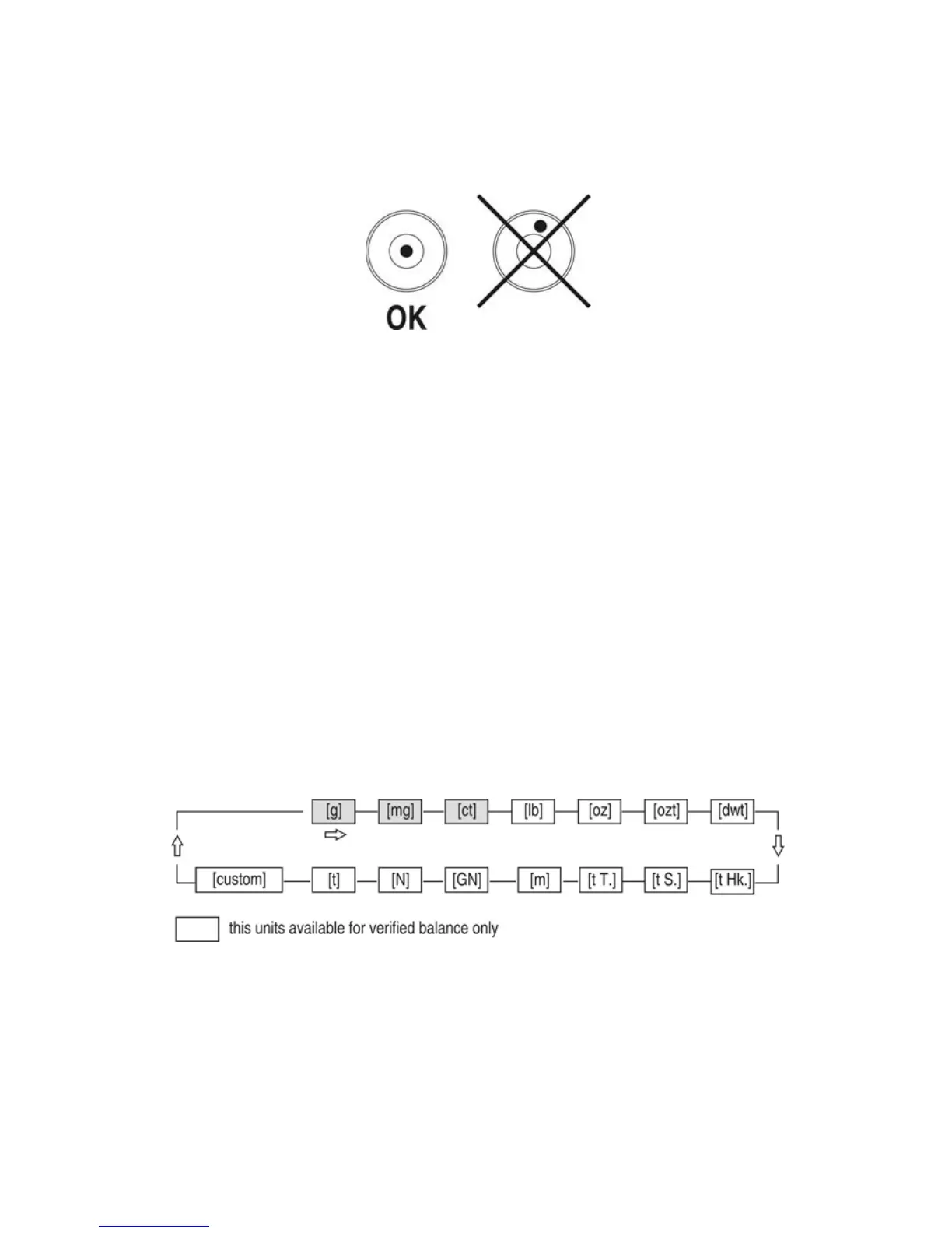 correct leveling is shown on the level indication installed at the rear of the balance. The air