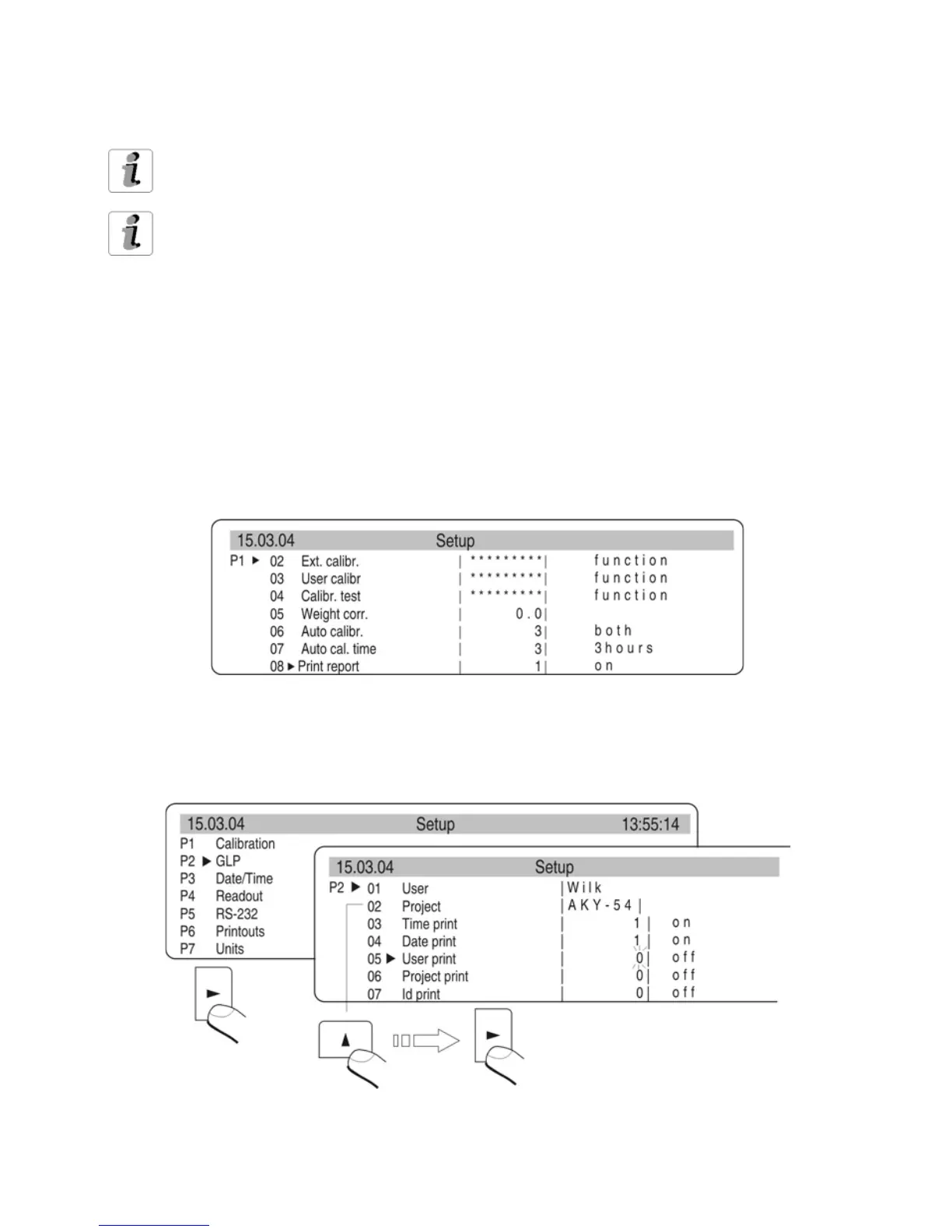 A content of report depends on setting in submenu GLP. All options with YES attribute are