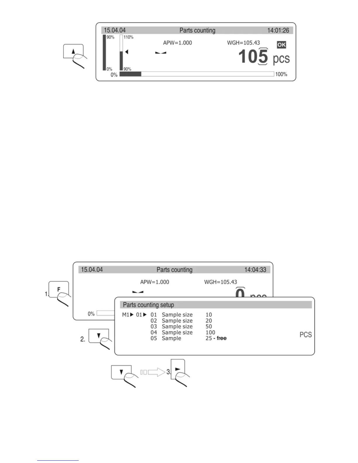 counting pieces function press the key Units. Dialog window appears on the display.
