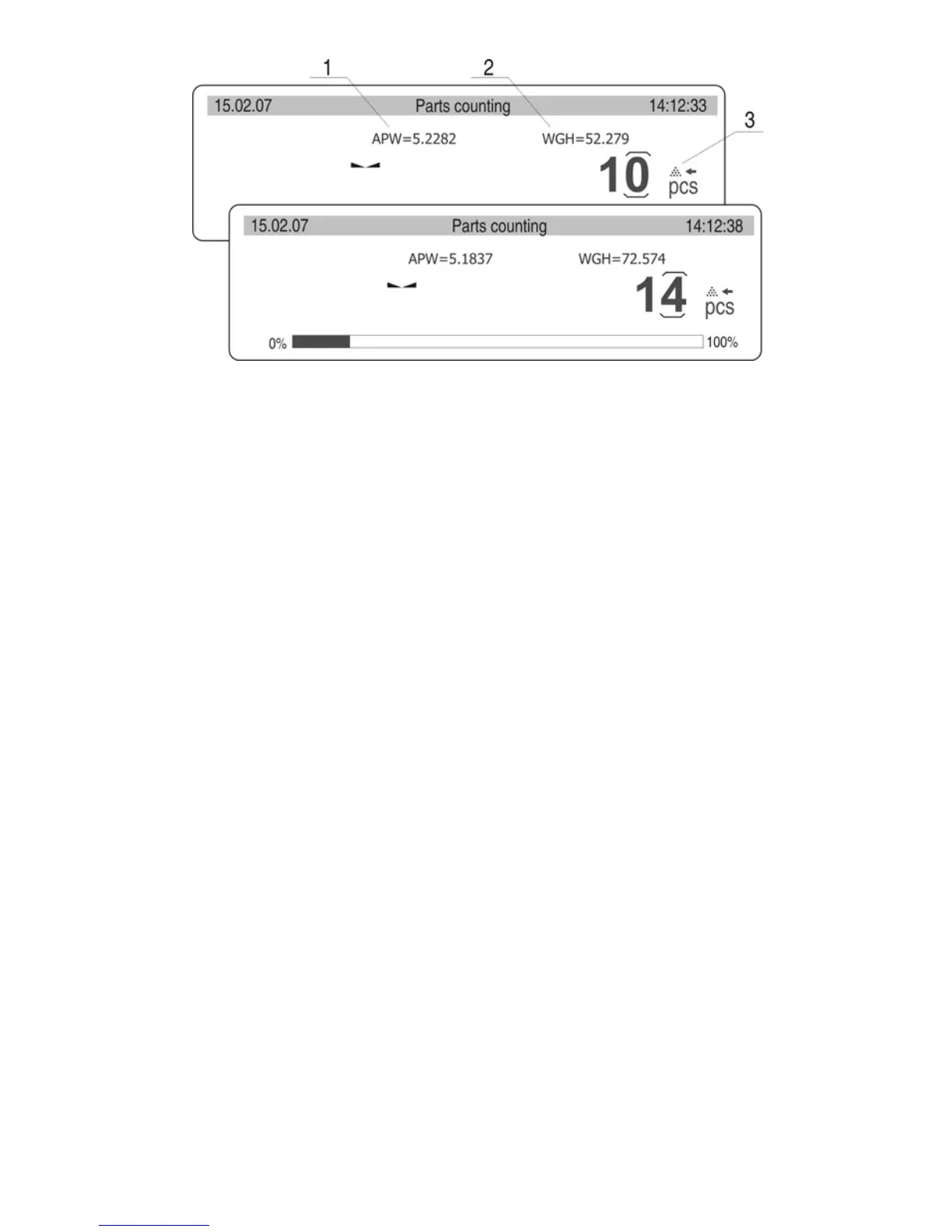 Display shows quantity of pieces which are on the pan (10 pieces). If less than counted