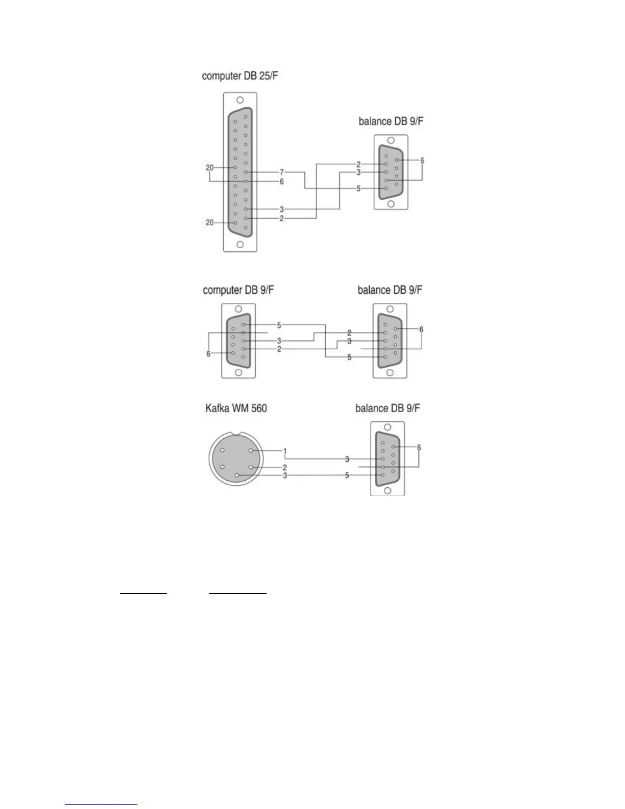 The balance connection DB 9/F – The computer connection DB 9/F (with control of