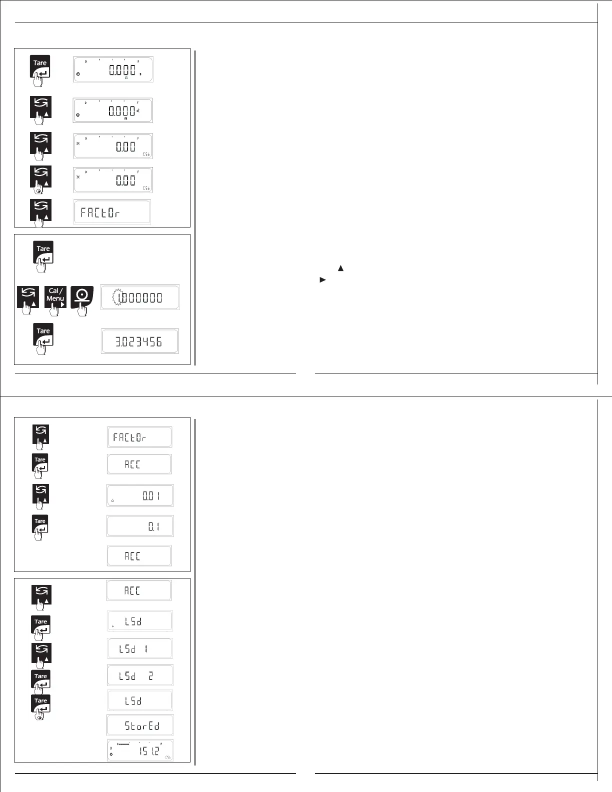 To store the Factor, Accuracy and LSD values, press and hold the <TARE> key when the