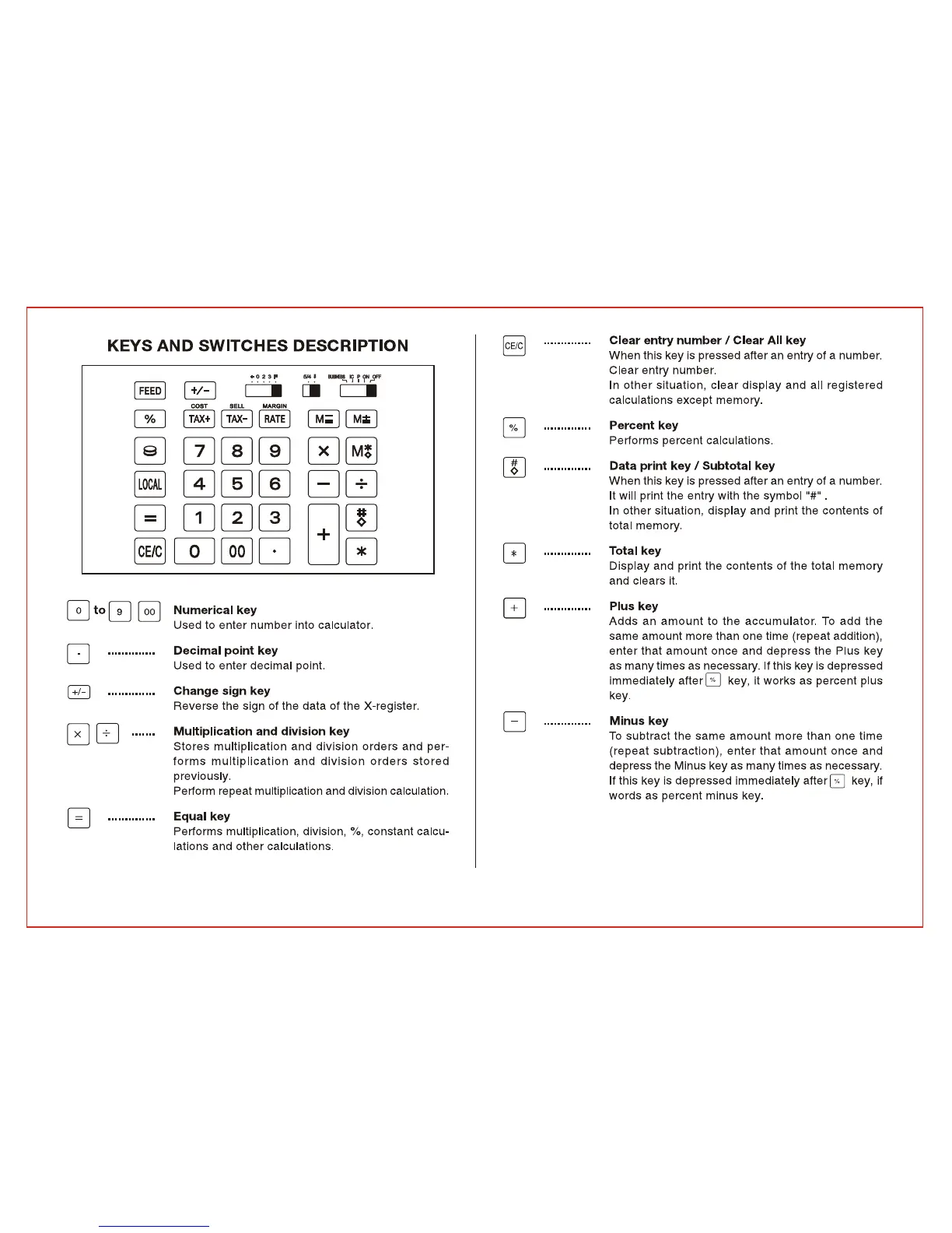 Citizen CX-32N - Keys and Switches Description; Numerical key; Equal key; Clear entry number; Clear All key