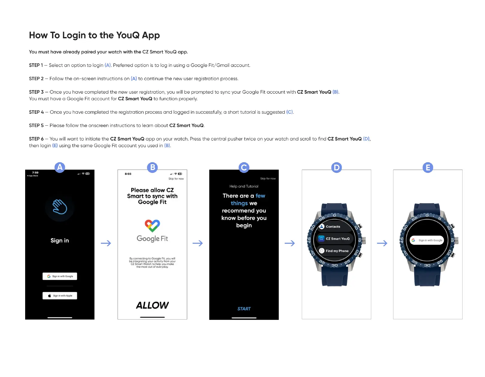 You must have a Google Fit account for CZ Smart YouQ to function properly.