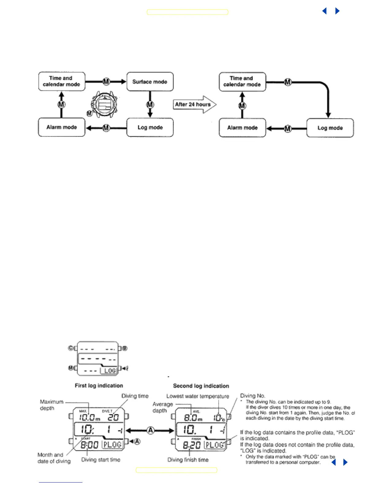 diving time exceeds about 6 hours, the stored data are deleted from the