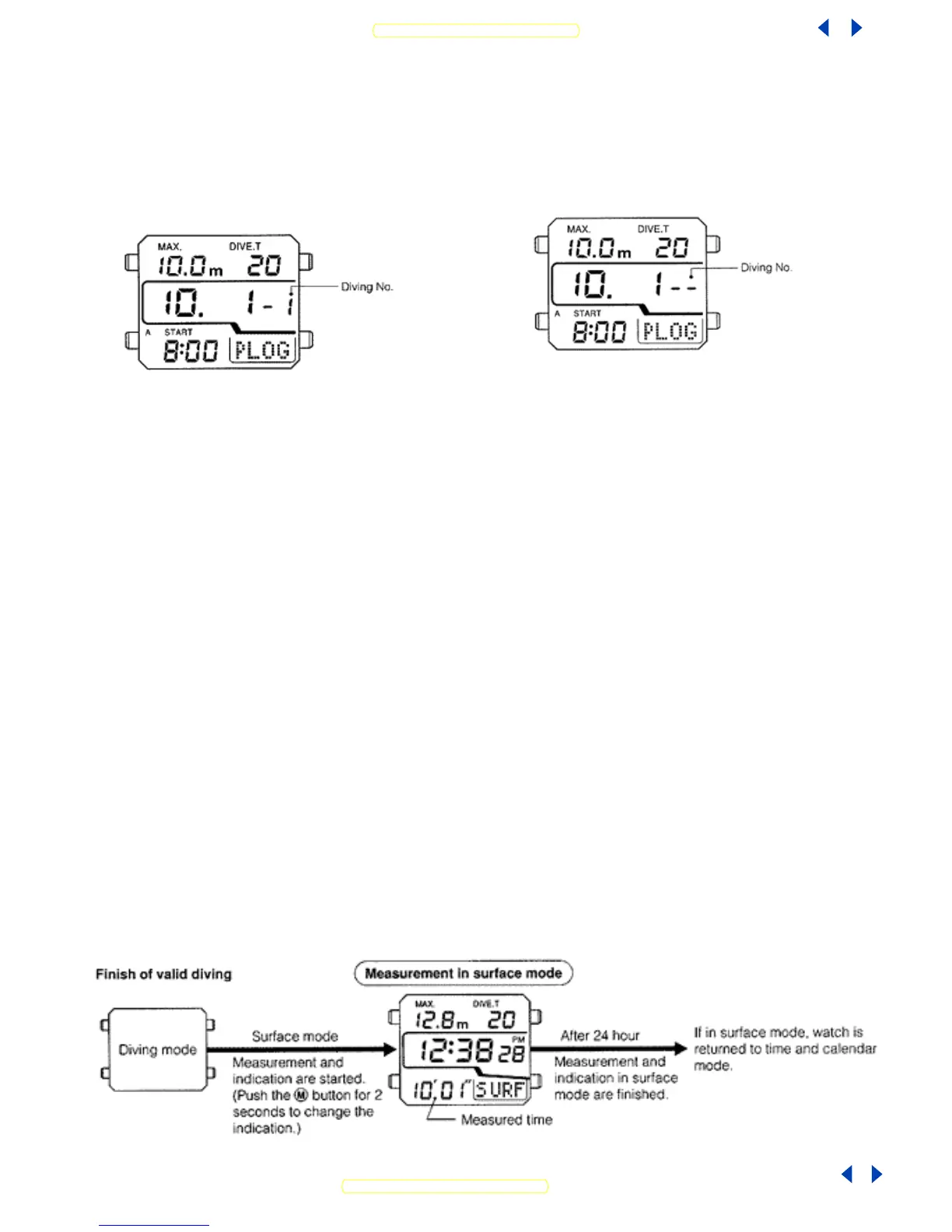 indicating the time in "SURF" mode. This mode is not indicated until the next