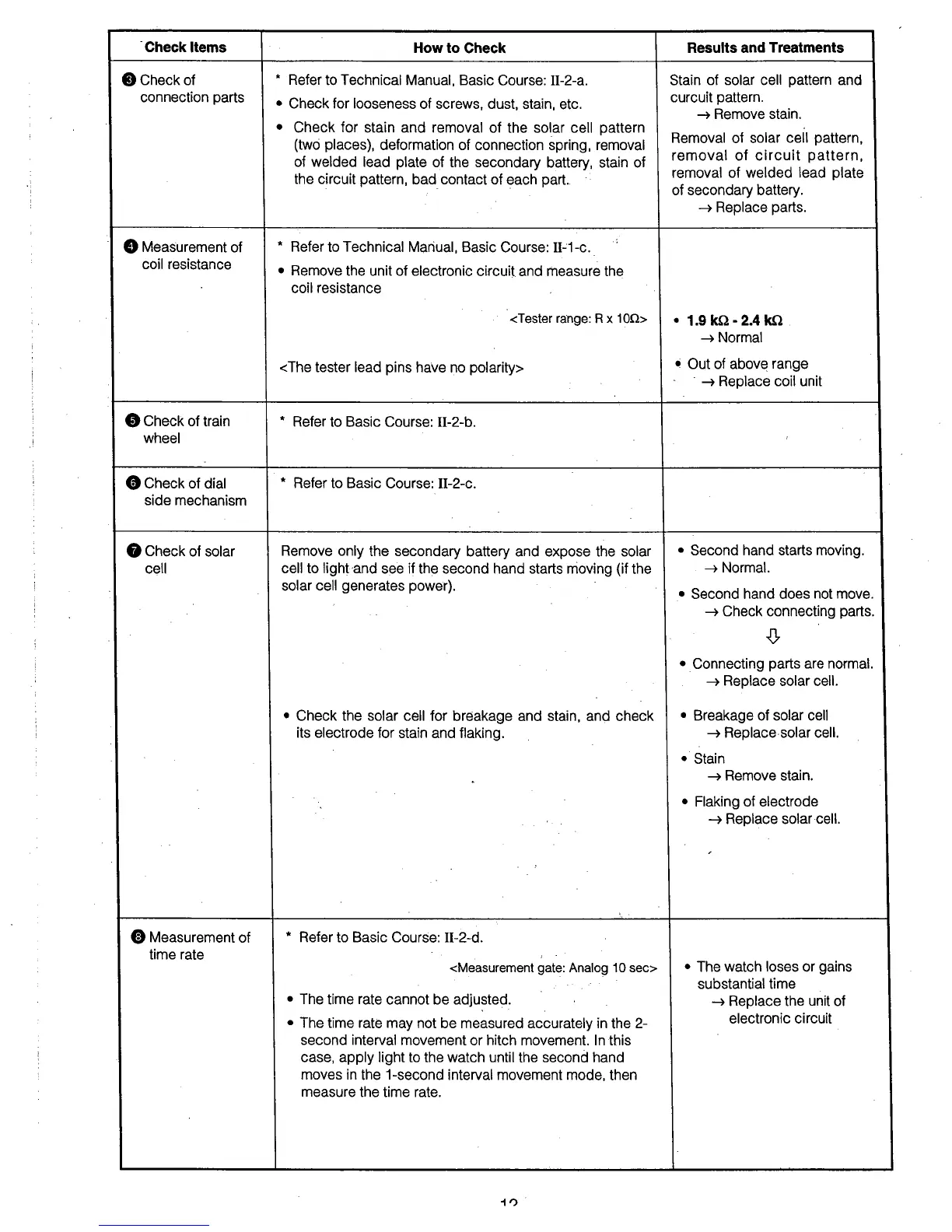 Citizen E030 - Check Connection Parts; Measure Coil Resistance; Check Train Wheel; Check Dial Side Mechanism