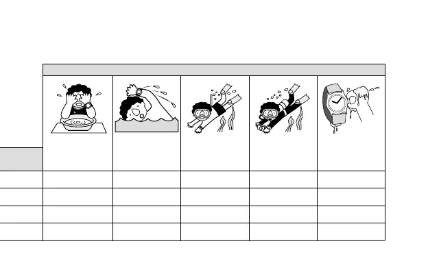 The following chart provides examples of use for reference to ensure that your watch is used