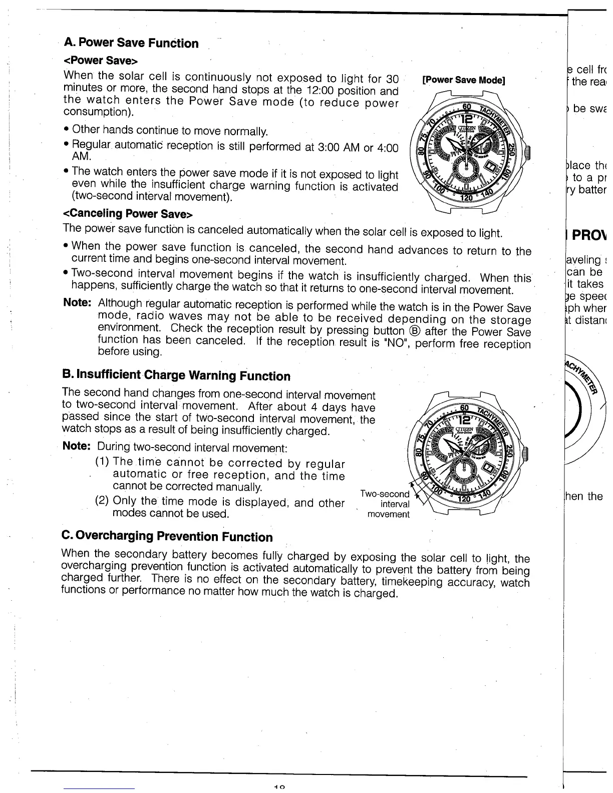Citizen E670 - A. Power Save Function; B. Insufficient Charge Warning Function; C. Overcharging Prevention Function