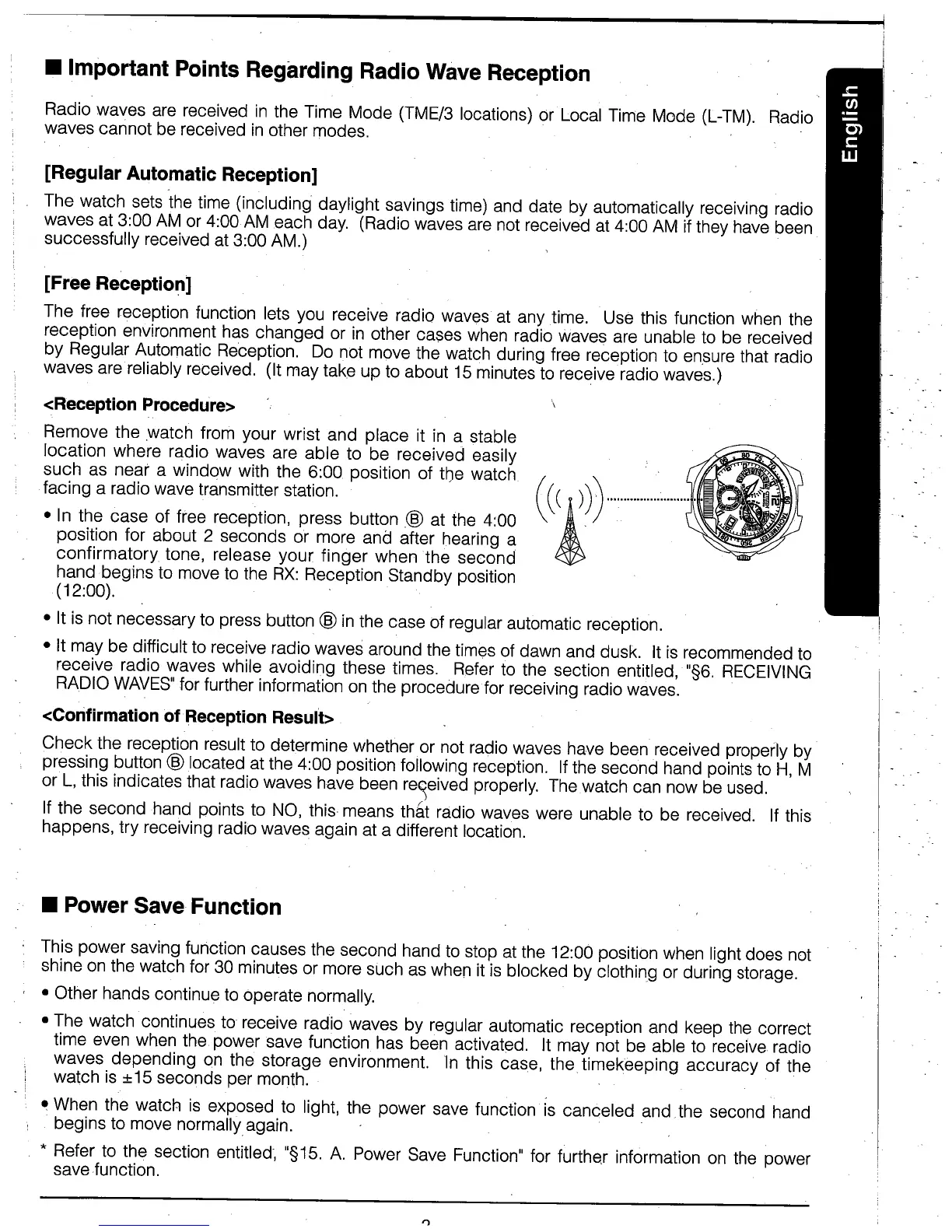Citizen E670 - Important Points Regarding Radio Wave Reception; Regular Automatic Reception; Free Reception; Reception Procedure