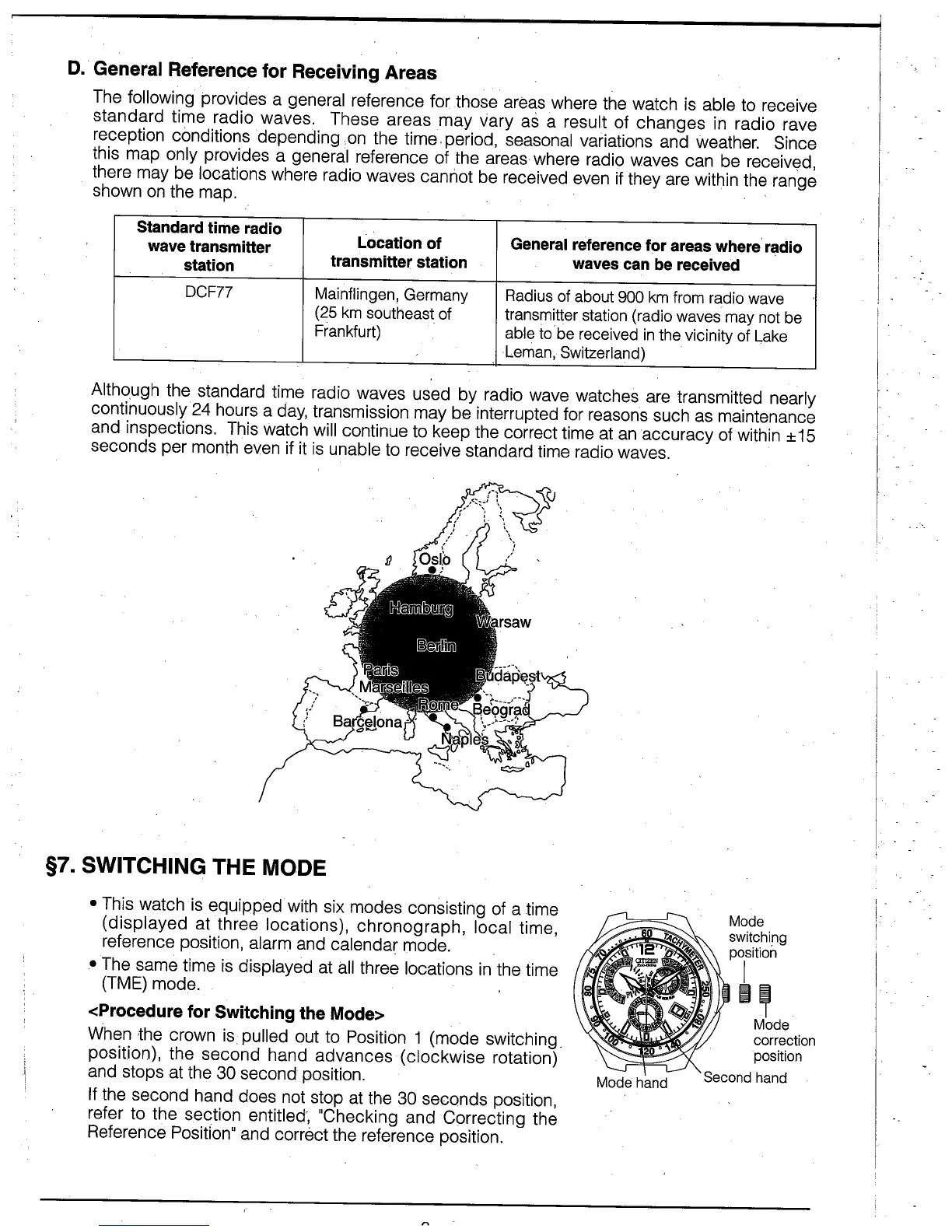 Citizen E670 - Switching the Mode; General Reference for Receiving Areas