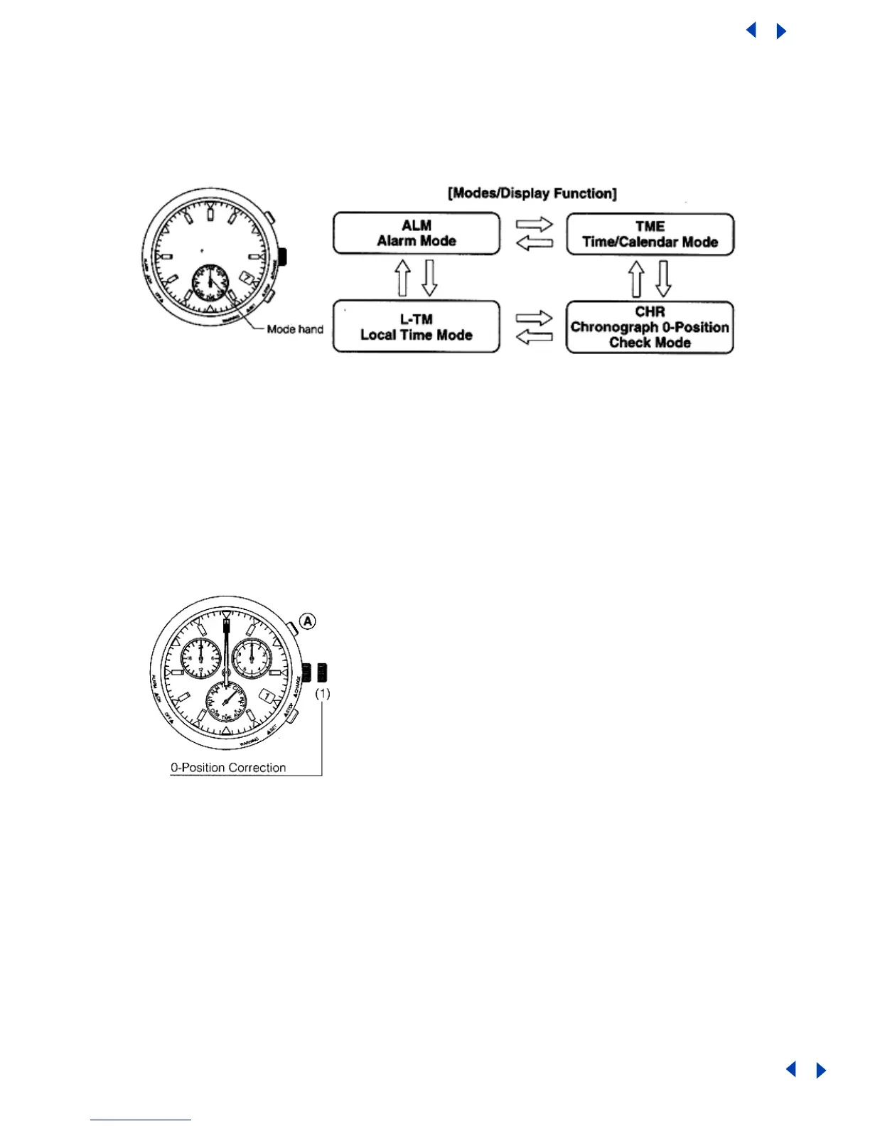 1. Pull the crown out to Position 1 in the chronograph [CHR] mode to correct the