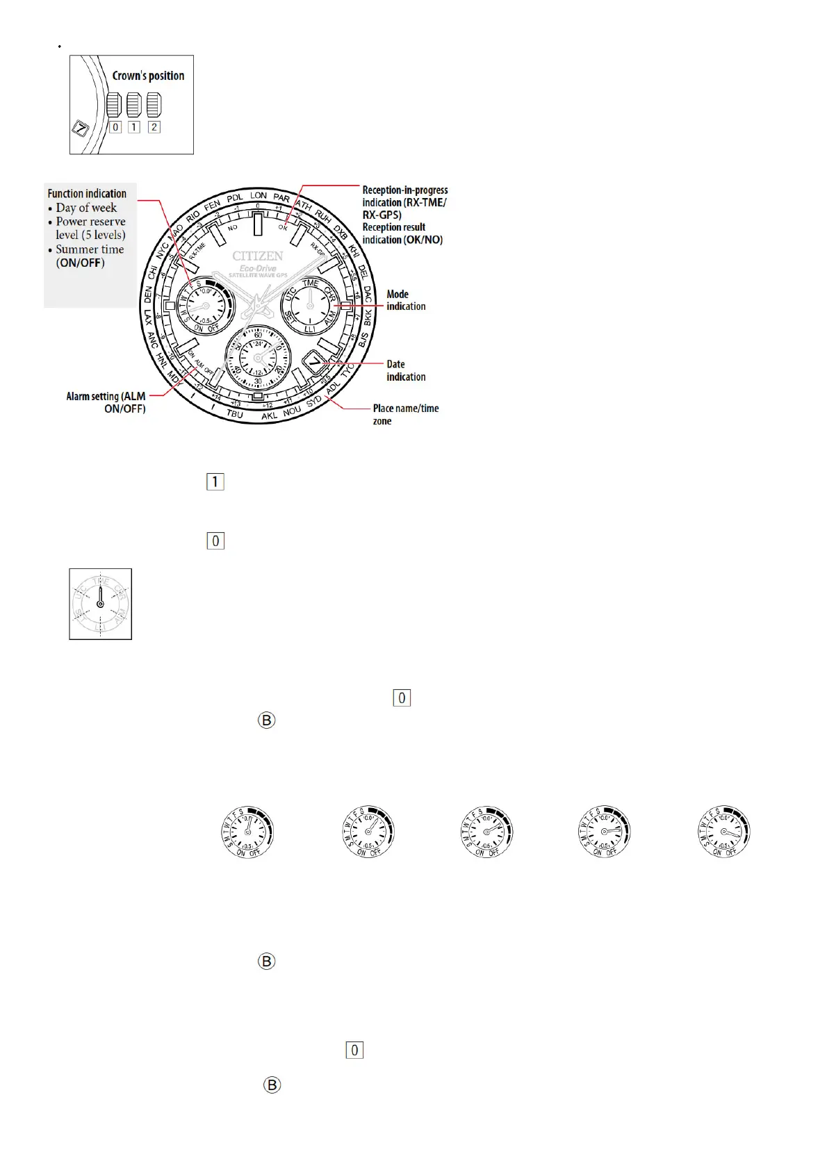 • Turn the crown so that the mode hand will point to a marker of the mode indication securely.