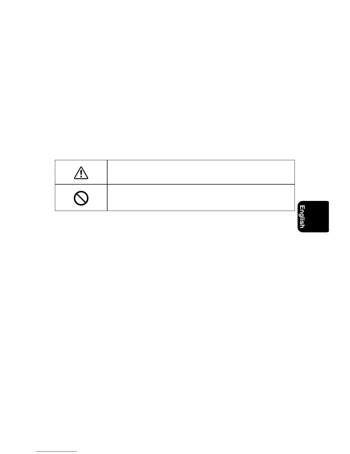 Warning (caution) symbol followed by prohibited matters.