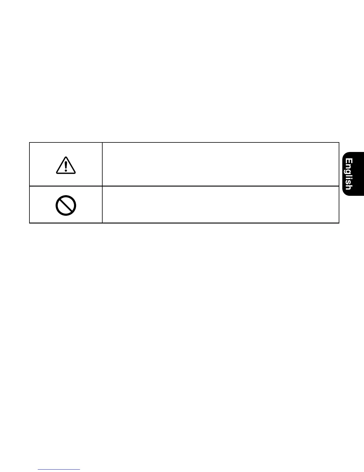 Warning (caution) symbol followed by prohibited use and/or