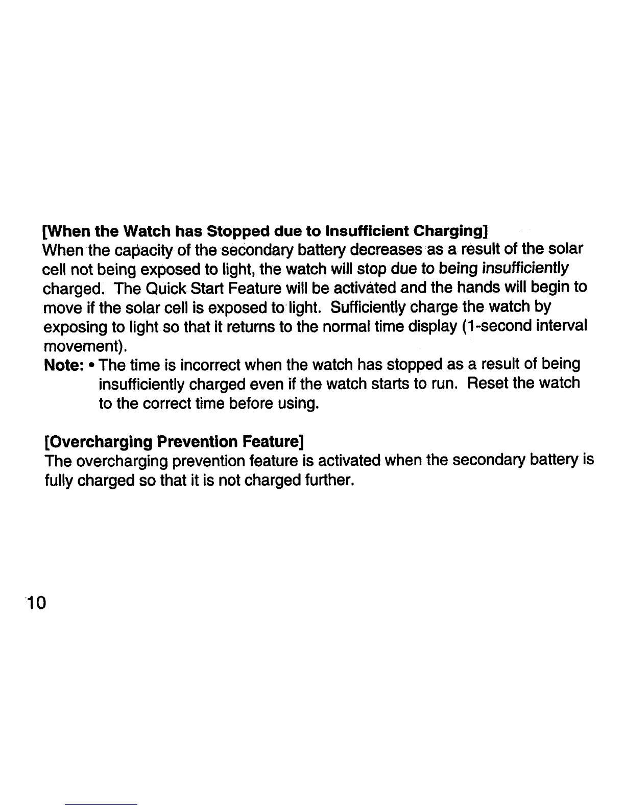 insufficiently charged even ifthe watch starts to run. Reset the watch