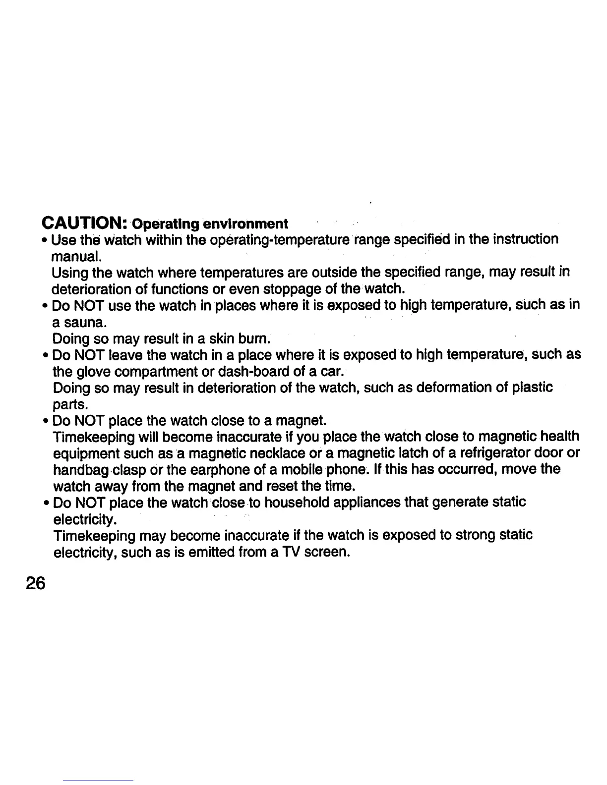 • Do NOT leave the watch in a place where itis exposed to high temperature,