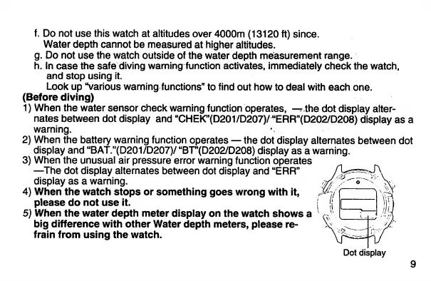 between dot display and "CHEK"(D201/D207)/"ERR"(D202/D208) display