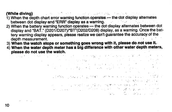 1) When the depth chart error warning function operates—*the;dot display alternates