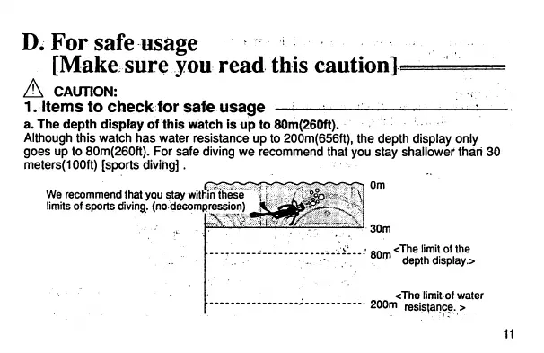Although this watch has water resistance up to 200m(656ft), the depth display only