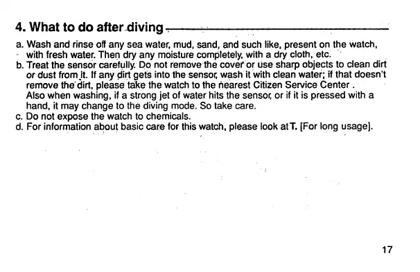 d. For information about basic care for this watch, please look atT. [Forlong usage].