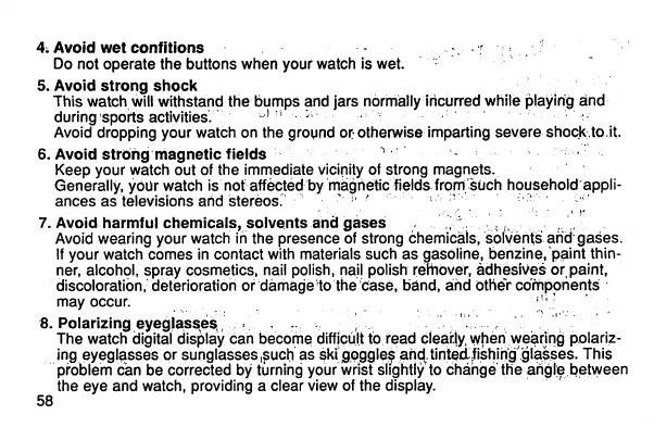 Ifyour watch comes in contact withmaterials such as gasoline, benzine, paint thin