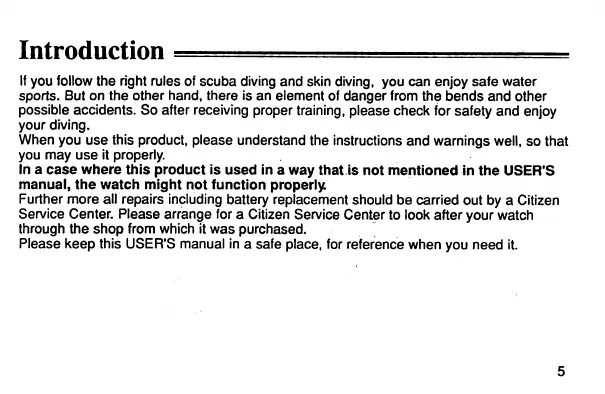 Further more all repairs including battery replacement should be carried out by a Citizen
