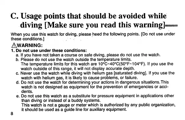 When you use this watch fordiving,please heed the