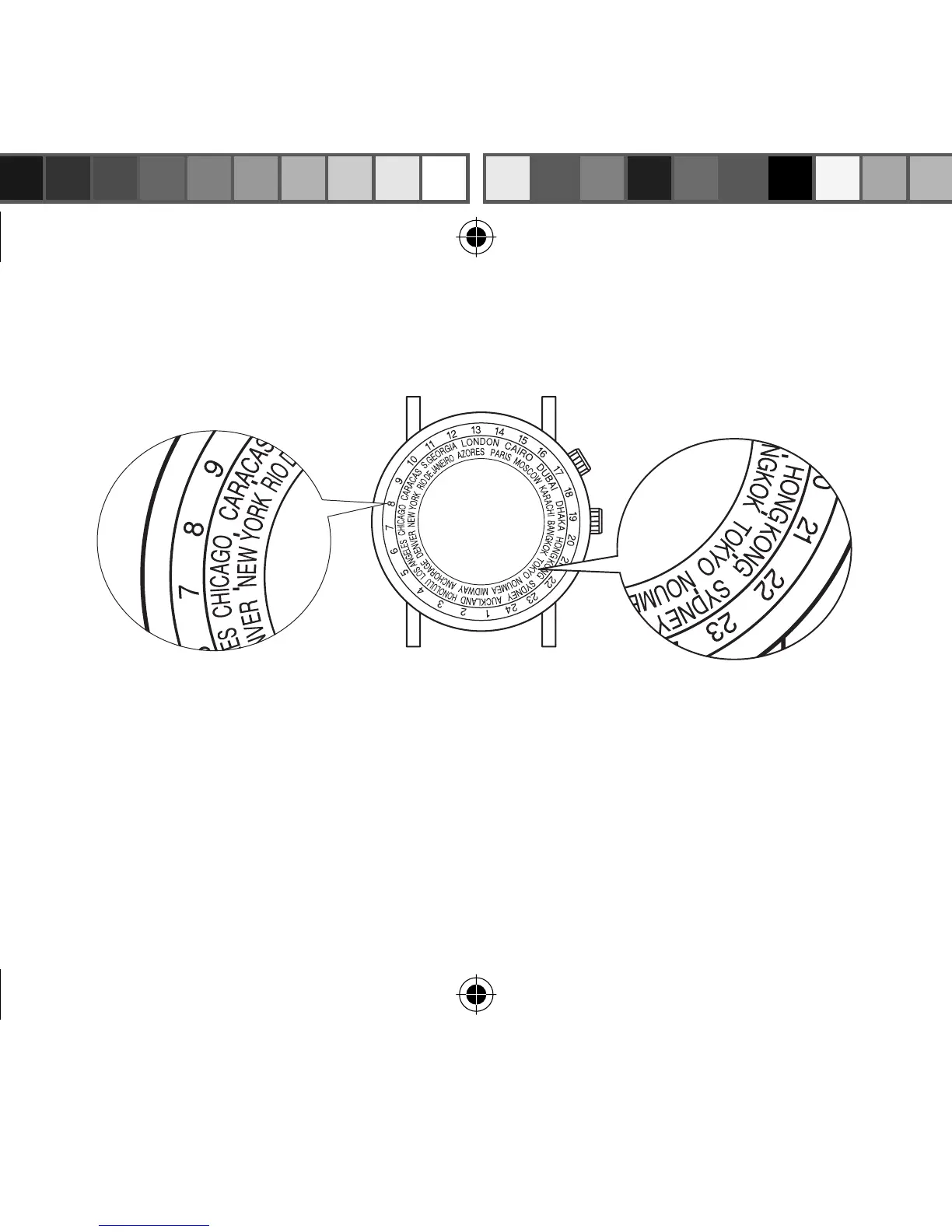(1) Turn the crown for 24-hour dial so that “12” on the dial comes above “LONDON”.