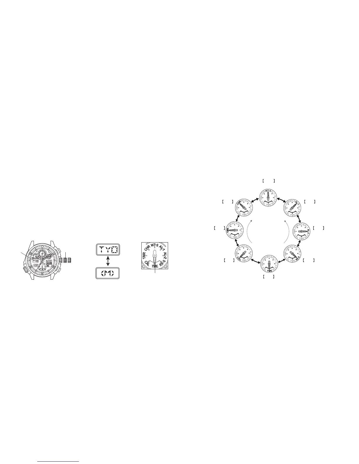 2. Turn the crown to the right or left to align the mode hand with the desired mode.
