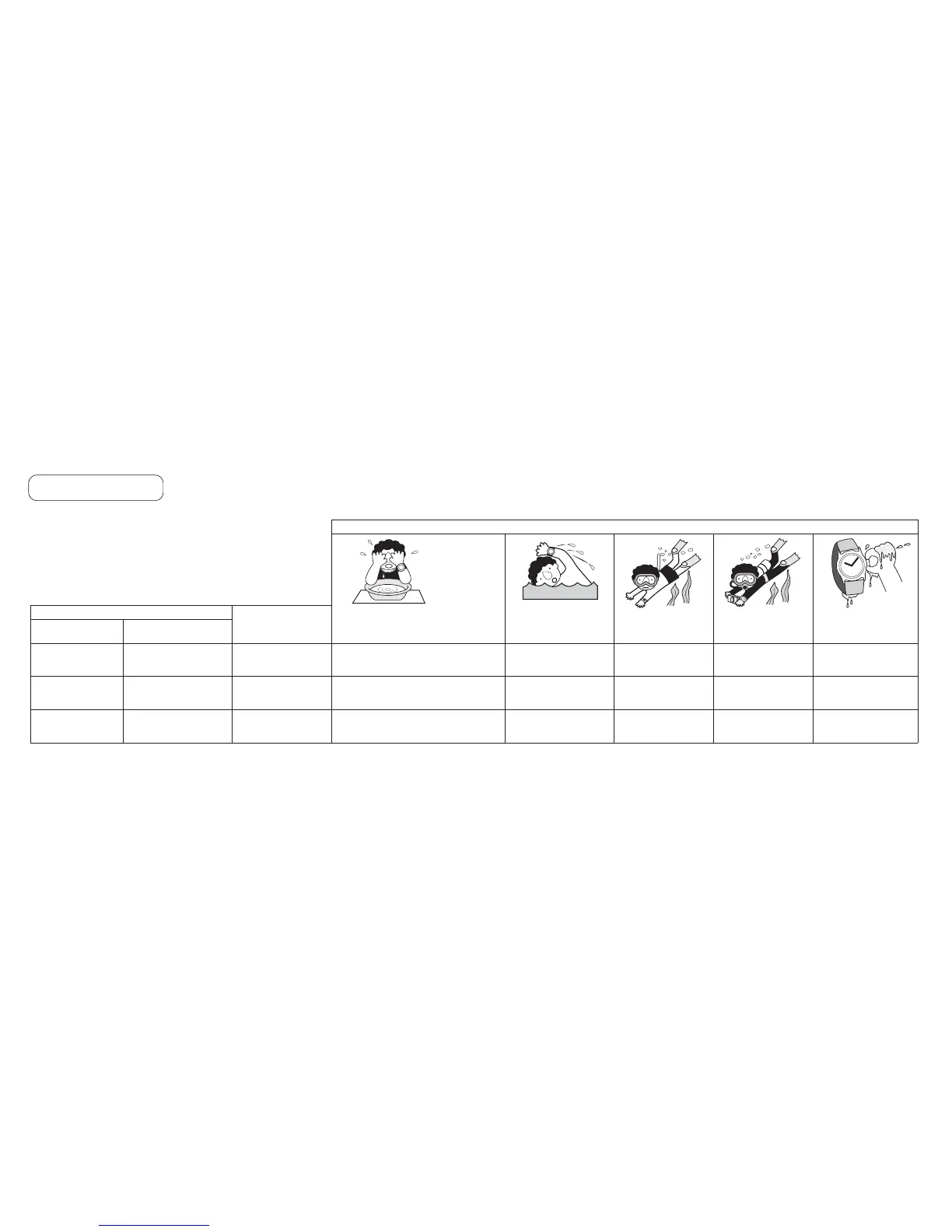 resistance of your watch, as indicated on the dial and case, and consult the table.
